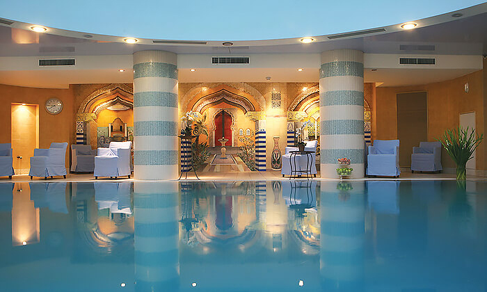 כניסה למתחם הספא במלון: בריכת מי ים המלח מקורה, סאונות, חמאם טורקי וג'קוזי
