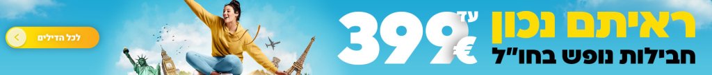 שעות הטיסות נתונות לשינוי כולל מזוודה (עד 20 ק"ג) ותיק יד (עד 5 ק"ג) לכל נוסע