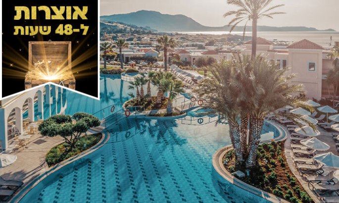 4 דיל ל-48 שעות: 2-7 לילות במלון 5* ברודוס עם מגלשות מים ע"ב הכל כלול, כולל טיסות והעברות